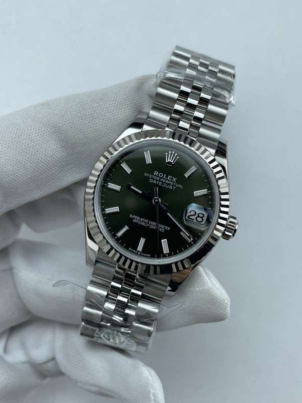 (준비완료/특급배송)NO.3656/QP공장 롤렉스 데이저스트 31mm 여성용 시계 그린 바인덱스 다이얼 플루티드 베젤 쥬빌레 밴드